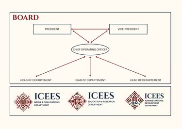 The Board comprises the President, Vice President, Chief Operating Officer, and the Heads of Departments.